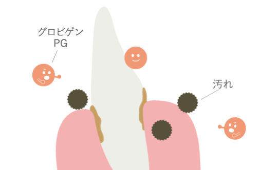 - グロビゲンPGには歯周病の原因となる細菌を抑制する作用がある