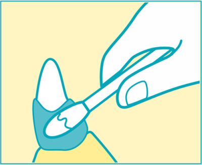 歯ブラシ等に適量のペーストを付け歯石部分を優しく磨くようにして、ペーストを塗り込みます。